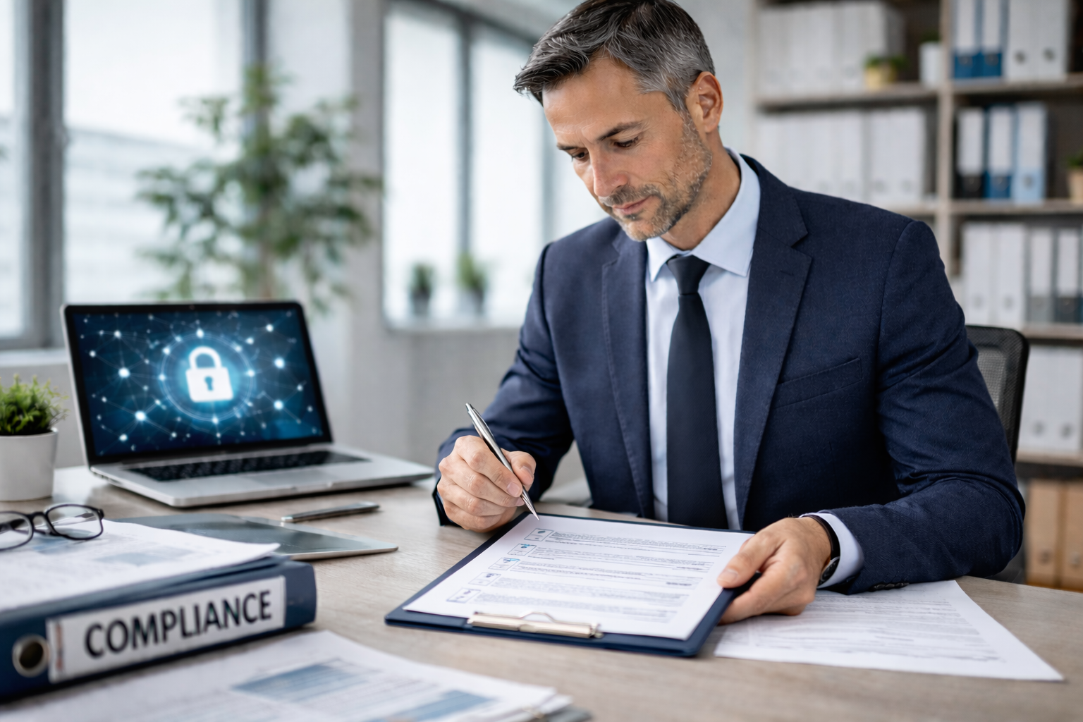 Datenschutz und IT-Compliance: Mit der fortschreitenden Digitalisierung müssen Unternehmen sicherstellen, dass die Verarbeitung personenbezogener Daten rechtmäßig erfolgt. DSGVO-Pflichten gehören dazu, genauso wie sichere Datenübermittlung, Zugriffsrechte, Datenaufbewahrung und Meldepflichten bei Datenschutzverletzungen.